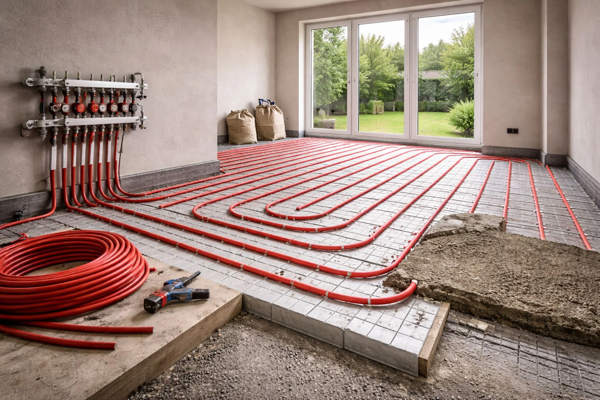 - Screed Systems: These are most commonly used in new builds or extensions, where the pipework is laid onto insulation before being covered with a screed to provide a thermal mass for the heating system.