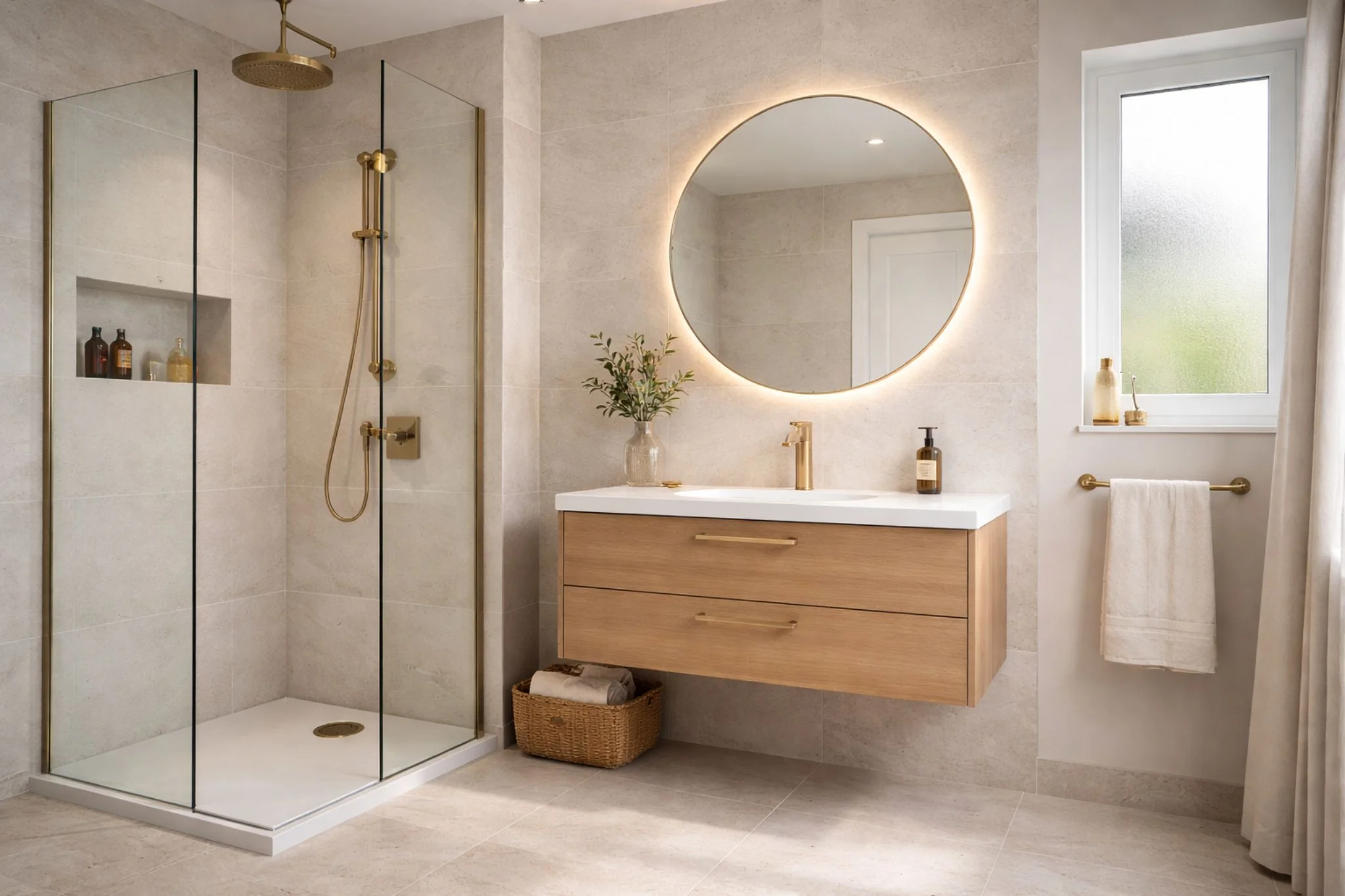 This finish pairs beautifully with natural materials like marble and wood, creating an elegant, spa-like atmosphere. Homeowners are also using gold fixtures to add warmth to otherwise neutral bathrooms, giving the space a cosy yet stylish vibe.