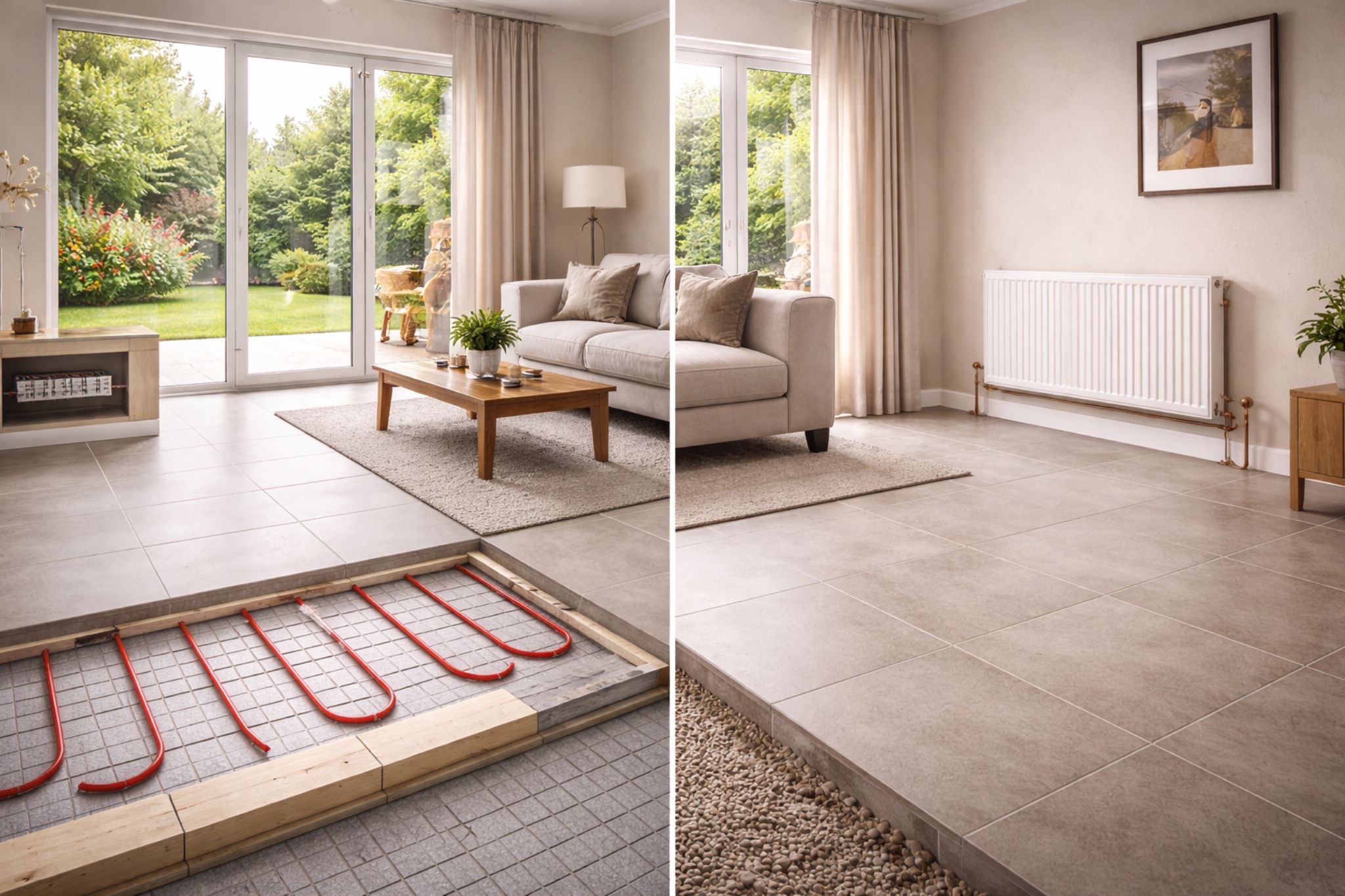 Underfloor heating is growing increasingly popular due to its superior thermal comfort, increased energy efficiency, and space-saving benefits. However, it also involves more extensive construction work and can take longer to heat up than radiators.